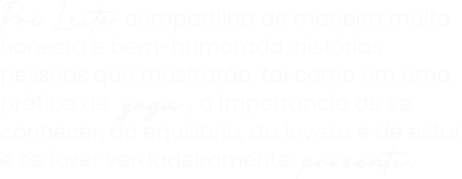 “Permita-se em paz. Somos cíclicos, o equilíbrio é dinâmico, e a paz não é exclusiva do tapete de yoga.”