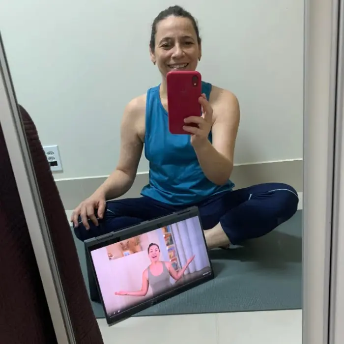 Sinto meu corpo mais firme e forte. Minha flexibilidade está aumentando aos poucos. Mas o principal pra mim são as mudanças emocionais, no modo que passei a encarar esses minutos que dedico a mim. Sinto que me valorizo e priorizo mais, sem culpa, e estou muito orgulhosa de estar fazendo algo por mim, com muita constância e prazer.